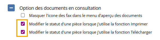 | Par défaut, lorsqu’une facture est téléchargée ou imprimée, son statut passe automatiquement à « Envoyé ». Il est toutefois possible de désactiver cette mise à jour automatique du statut si vous souhaitez gérer l’envoi manuellement.Pour désactiver le changement de statut :