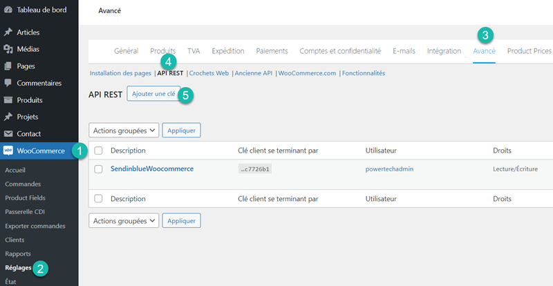 Pour générer ces clés, rendez vous dans votre espace WooCommerce :